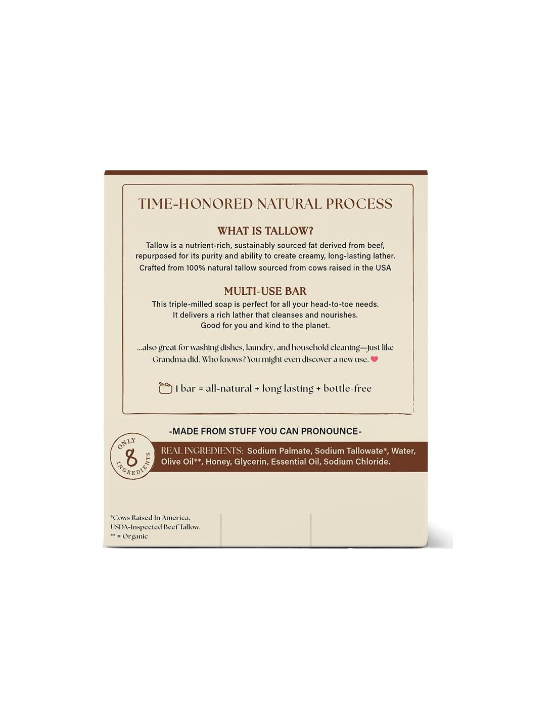 - HECHO EN EE. UU. CON ORGULLO - Barras de jabón hechas a mano utilizando vacas criadas en América y tallo inspeccionado por el USDA; empaque ecológico sin botellas que es biodegradable y reciclable de manera responsable