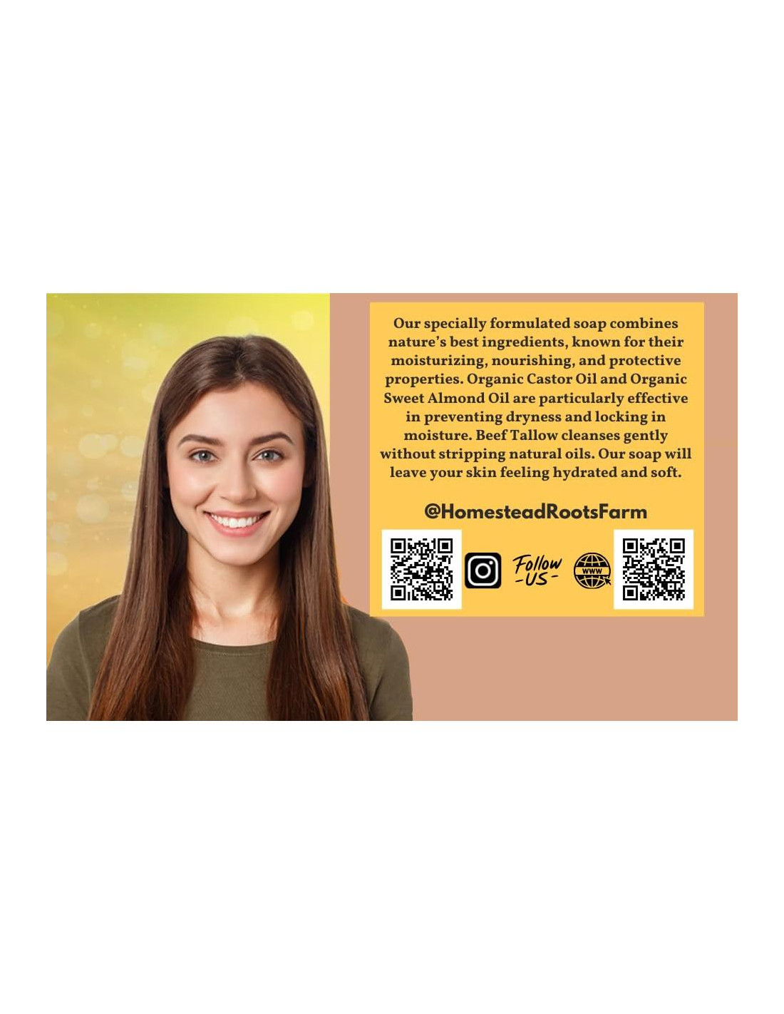 - Ingredientes 100% Naturales: Hecho con aceites orgánicos y grasa de res alimentada con pasto para una experiencia de cuidado de la piel verdaderamente natural.