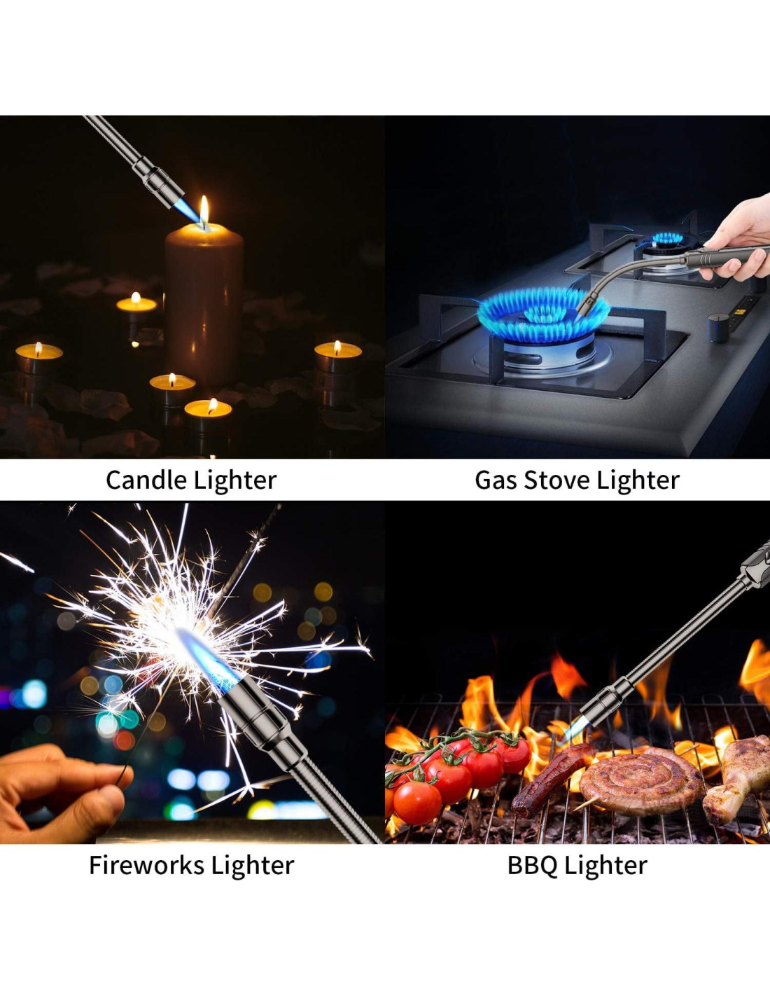 - [Rotación de 360 codo suave y flexible]- Este encendedor de butano tiene una manguera de acero inoxidable flexible de 13 cm de largo, un tubo de acero inoxidable de 12 cm de largo y 40 cm de longitud total. Los encendedores de gas de mango largo pueden rotar a voluntad de manera conveniente y doblarse a cualquier ángulo según tus necesidades, lo que es práctico y seguro, especialmente para cocineros, exploradores salvajes, quemadores de leña, velas grandes.