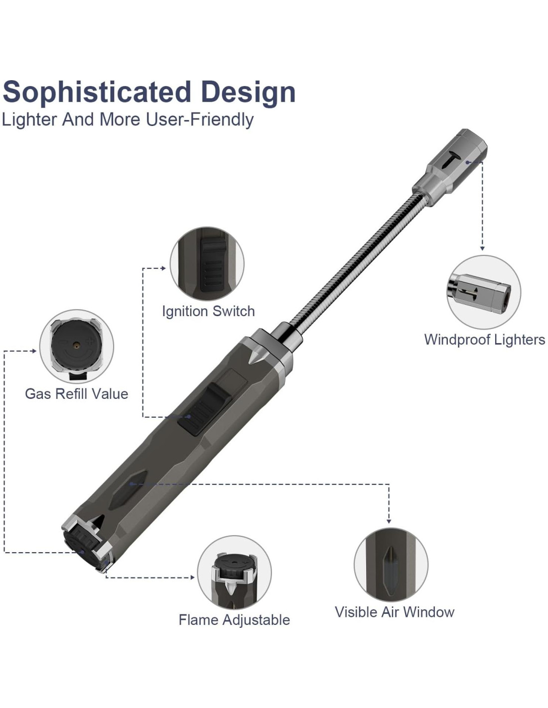 - Encendedor de Cuello Flexible 360: El cuello de acero de grado industrial se dobla y mantiene cualquier ángulo para apuntar a lugares incómodos (esquinas de fogatas, frascos de vela profundos). Mantén las manos a más de 8 pulgadas de chispas y calor, ¡la seguridad primero!