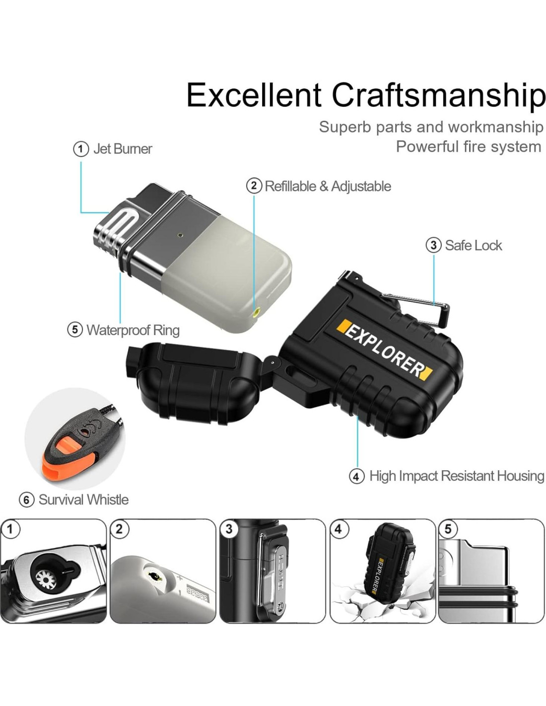 - [Encendedor Impermeable] El encendedor de butano Jaerdhs está construido con sello de goma y bloqueo de seguridad. Es a prueba de clima y se puede usar en cualquier lugar y en cualquier clima. Un equipo táctico necesario para el aire libre.