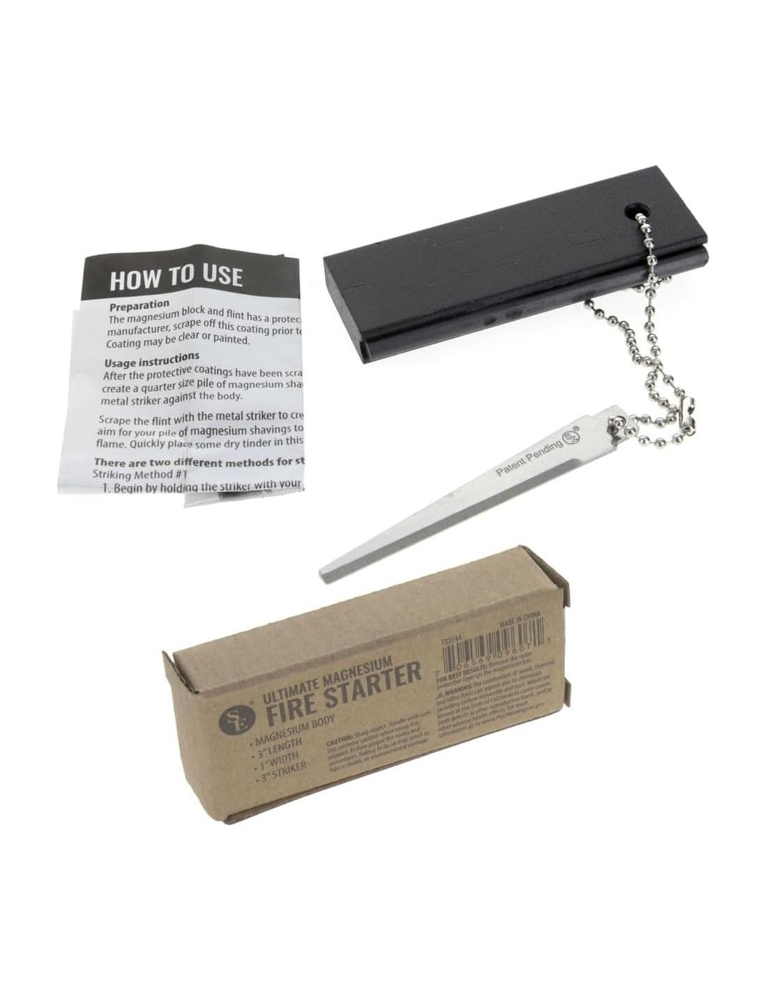- Barra de Combustible de Magnesio Eficiente: Equipado con una barra de combustible de magnesio sólido de 3" y pedernal, este kit de encendedor asegura cientos de usos, proporcionando una chispa confiable incluso en condiciones húmedas o mojadas