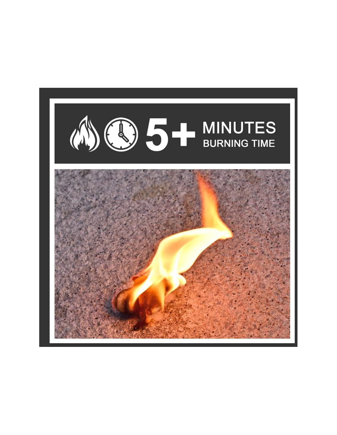 - [HASTA 5+ MINUTOS DE COMBUSTIÓN] - Enciende los tapones del encendedor de fuego con solo una chispa o toque de llama para alto, luego disfruta de 5+ minutos de combustión.