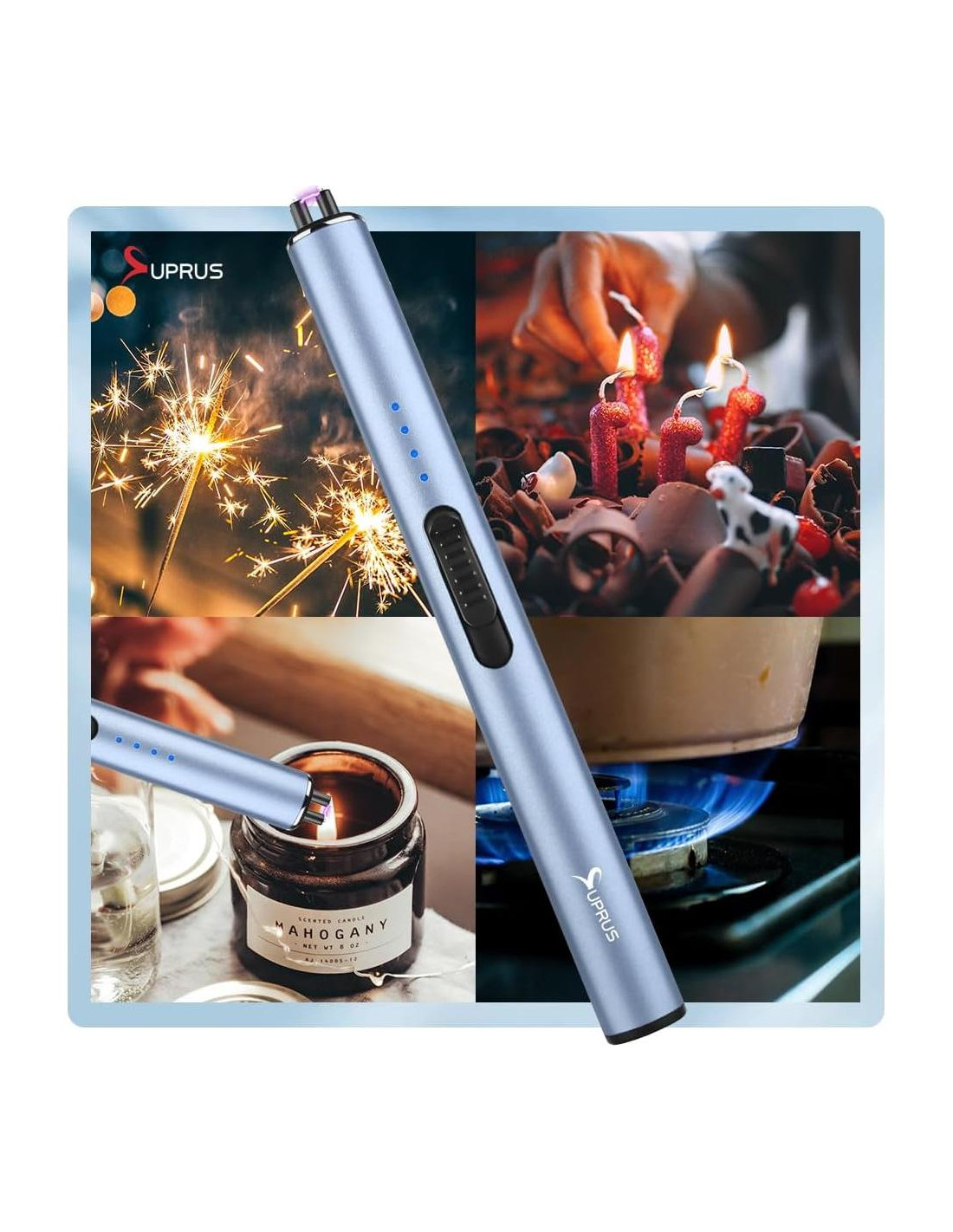 - Notificación de batería: Este es el encendedor de arco SUPRUS mejorado que puede mostrar el volumen de batería en tiempo real. Cuando las 4 luces LED en el cilindro se encienden, está completamente cargado.