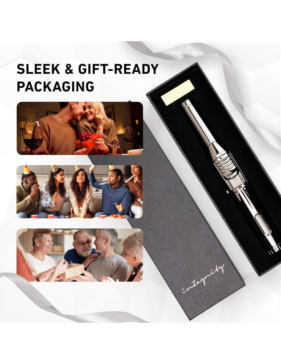 - Con una forma de pluma y un acabado elegante, nuestro encendedor de cigarros se adapta fácilmente a bolsillos o cajones. La cabeza inclinable de los encendedores recargables de pluma añade flexibilidad mientras que el diseño moderno aporta funcionalidad y estilo a tus herramientas diarias.