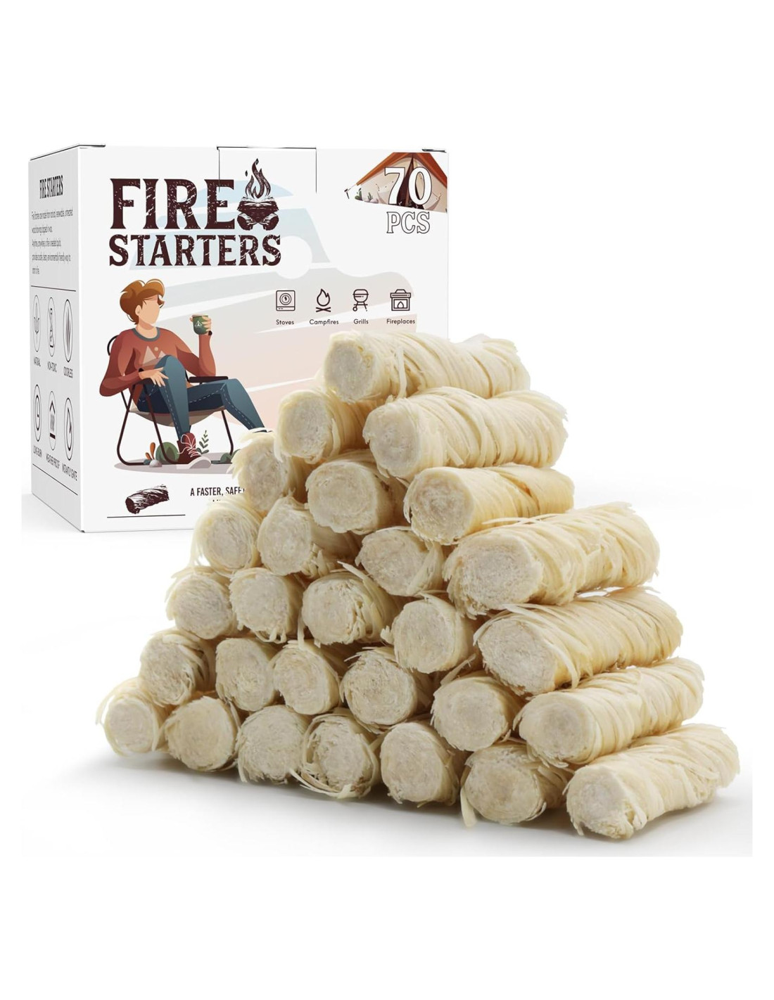 - Rápido y fácil: Cada paquete contiene 70 piezas que te ayudarán a encender fuegos prácticamente de inmediato. Simplemente lanza un par de nuestras piezas de encendedor en nuestro fogón, horno de pizza, parrilla de carbón o tu chimenea interior, y tendrás un fuego rugiente en poco tiempo. No es necesario enrollar papel ni usar dispositivos eléctricos. Te encantará y apreciarás la facilidad con la que puedes encender fuegos