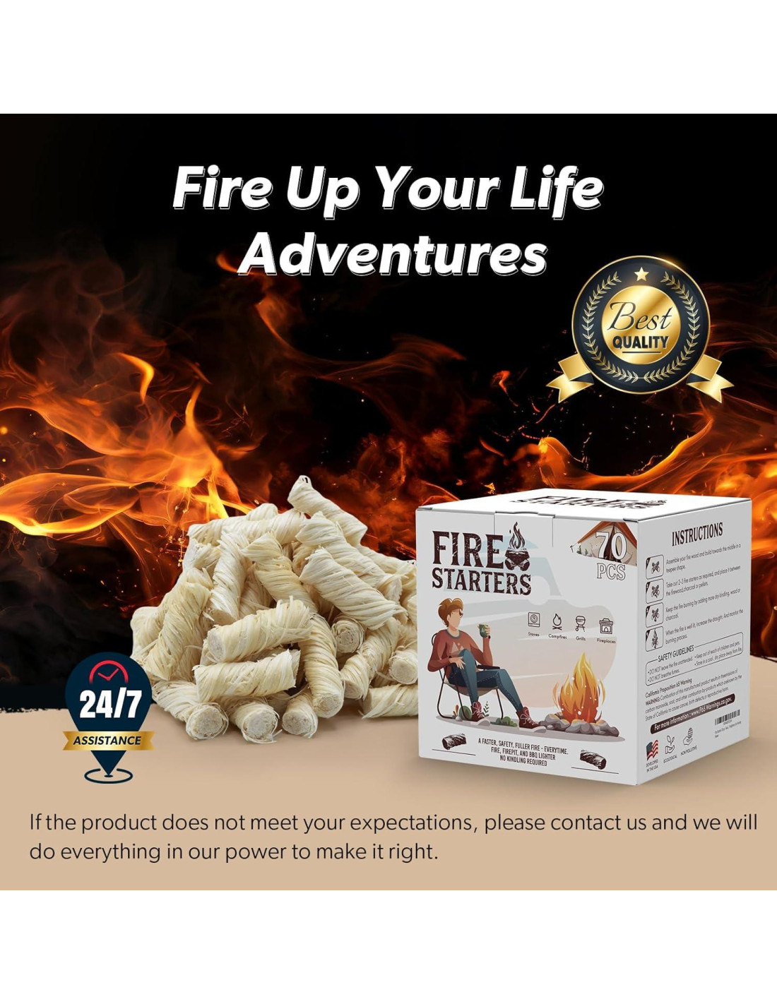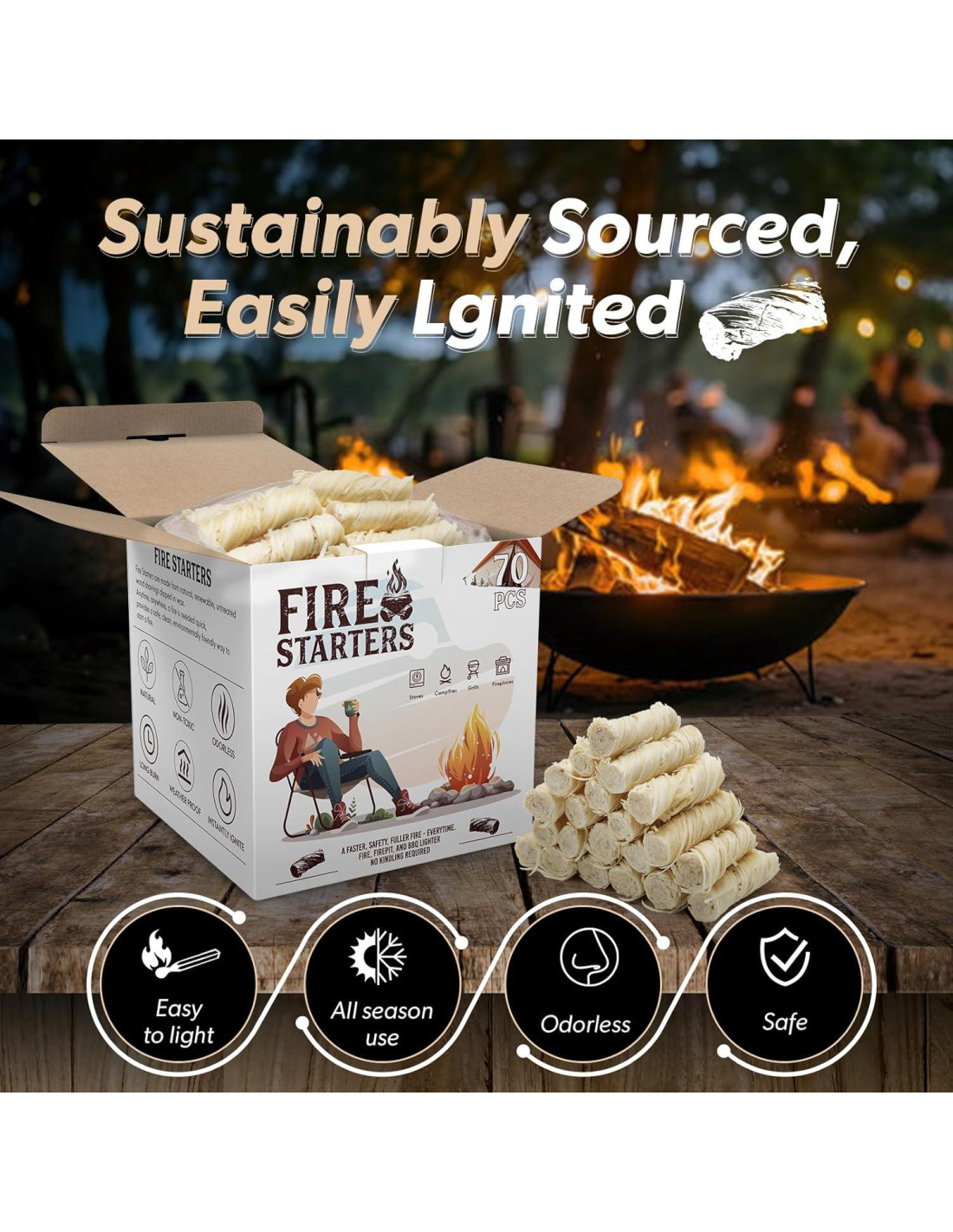 - Seguro y confiable: Nunca tendrás que preocuparte por buscar en el área leña seca. Simplemente lanza un par de encendedores de carbón y tendrás un fuego rugiente en solo minutos. Cada palo de encendedor arde hasta 10 minutos y proporciona suficiente calor para satisfacer tus necesidades