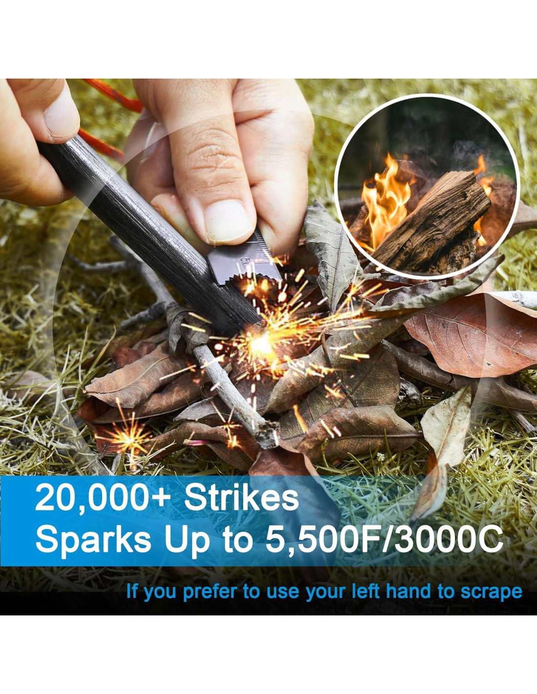 - [Chispas Impresionantes] Nuestras Barras de Ferro producen chispas que pueden alcanzar temperaturas de hasta 5,500 grados Fahrenheit (3,031 grados Celsius), lo que hace posible encender un fuego en cualquier condición climática.