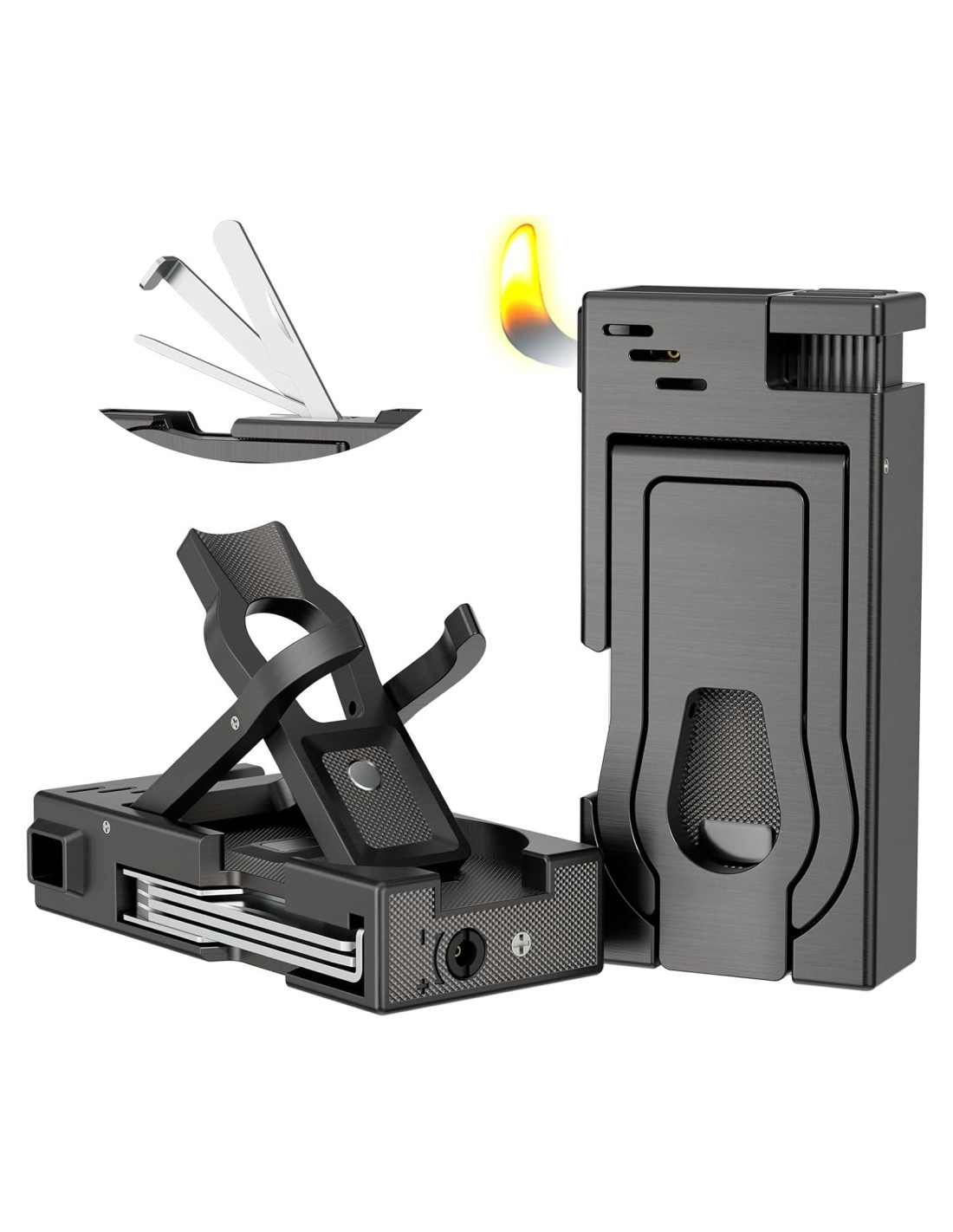 - Encendedor de Tubo con Soporte de Tubo Incorporado -- FANKAI se compromete a desarrollar accesorios de fumar multifuncionales para la comodidad de los fumadores; Este encendedor de butano cuenta con un soporte de tubo plegable que se adapta a varios tamaños y formas de tubos