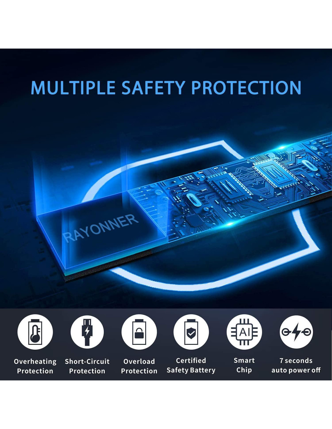 - Sistema de Protección de Seguridad: El encendedor RAYONNER tiene un sistema de seguridad multi-protección especialmente diseñado con protección contra sobrecalentamiento y sobrecarga. El botón de encendido está debajo del interruptor de seguridad, evitando toques accidentales del botón de encendido cuando lo pones en tu bolsillo o bolso
