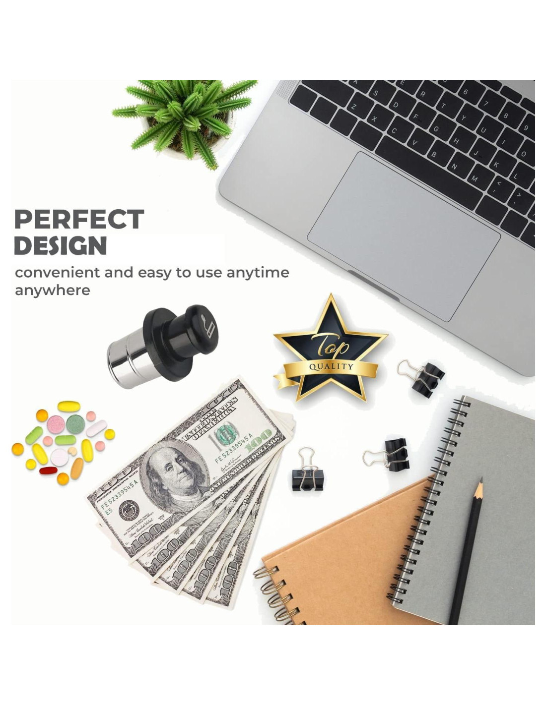 - Ideal para ocultar artículos más pequeños como anillos, aretes, tarjetas micro sd o un billete de dólar bien doblado. Simplemente desenrosca la parte superior y coloca cualquier cosa que no quieras que se encuentre. Tamaño del seguro: 0.75 inches (1,91 cm) de profundidad x 0.75 inches (1,91 cm) de diámetro.