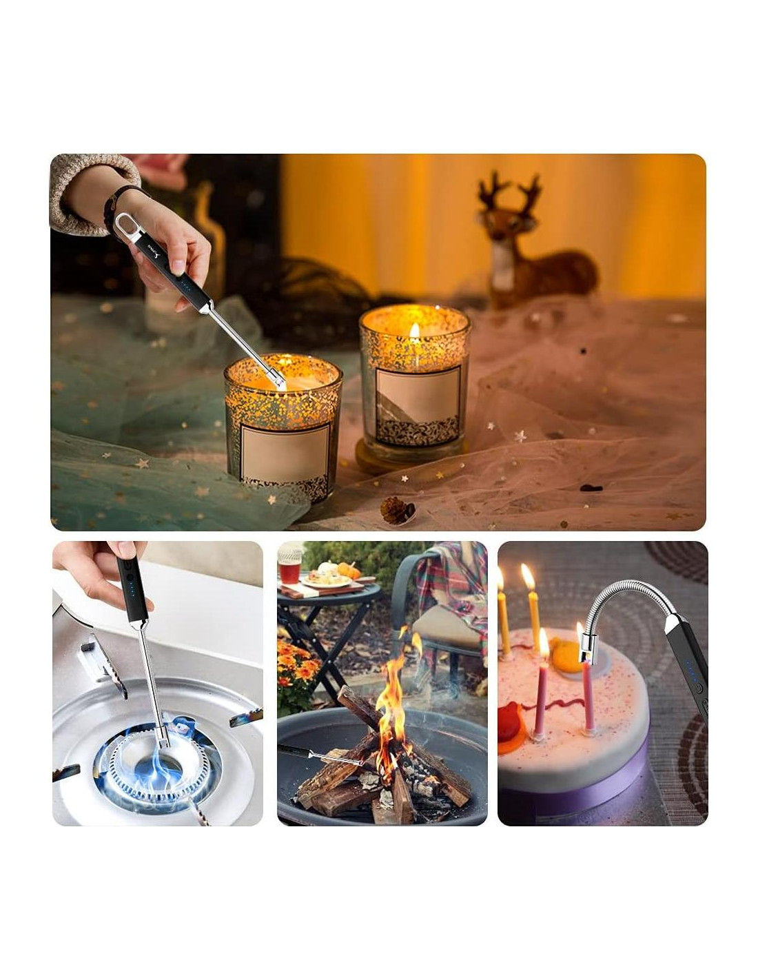 - Cuello Flexible Rotatorio de 360 - El Encendedor de Arco con Cuello Rotatorio de 360 se puede doblar a cualquier ángulo que desees para satisfacer diferentes aplicaciones, el encendedor largo ideal de 10.4 cm es perfecto para velas, estufas, parrillas BBQ, camping, senderismo, fuegos artificiales, actividades al aire libre y en interiores, etc. y te protege a ti y a tu familia de quemaduras.