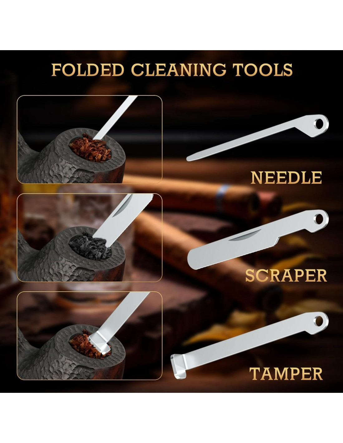 - [Herramienta de Limpieza de Tubo de 3 Piezas Incorporada]--Equipado con un raspador, un compactador y una aguja, las herramientas están ordenadamente plegadas dentro del encendedor de butano; Este encendedor multitool para tubos proporciona todo lo que necesitas para una experiencia de fumar sin interrupciones en cualquier momento y lugar
