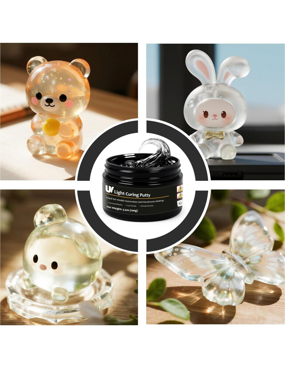 - Modelado Creativo en 3D: La Masilla UV puede tallar, moldear y representar fácilmente formas 3D finas! La arcilla UV tiene una excelente plasticidad, la luz UV establece instantáneamente la forma con precisión, creando joyería impresionante, modelos en miniatura, figuritas y obras únicas de bricolaje