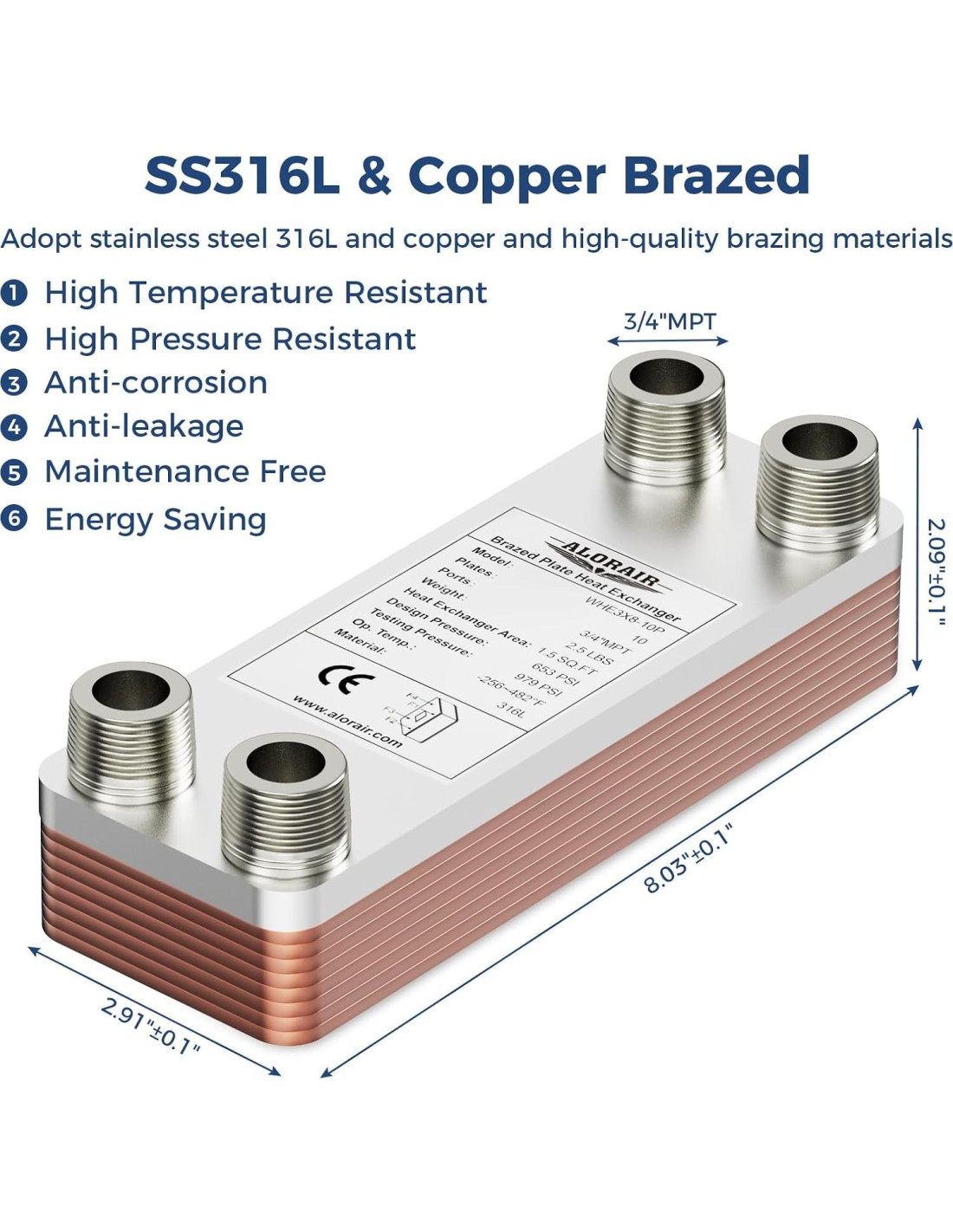 - Garantía limitada de un año: El intercambiador de calor de acero inoxidable proporciona una eficiencia térmica excepcional y durabilidad en un diseño compacto y liviano, y ALORAIR ofrece una garantía limitada de un año que cubre defectos de fabricación.