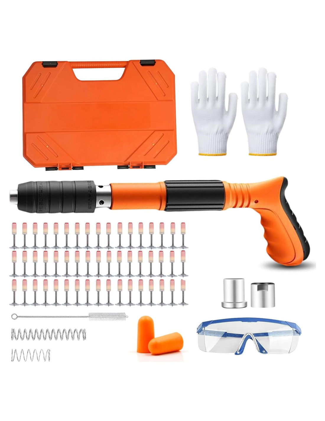- Ajuste de 5 velocidades: pistola de clavos de concreto ajustable para adaptarse a diferentes requisitos de diseño. El reductor de baja velocidad es adecuado para superficies blandas, mientras que el reductor de alta velocidad tiene alta penetración y es adecuado para sustratos de alta dureza. Es versátil y eficiente para su uso en techos de bricolaje, soportes de montaje, monitoreo de puertas y ventanas, etc.