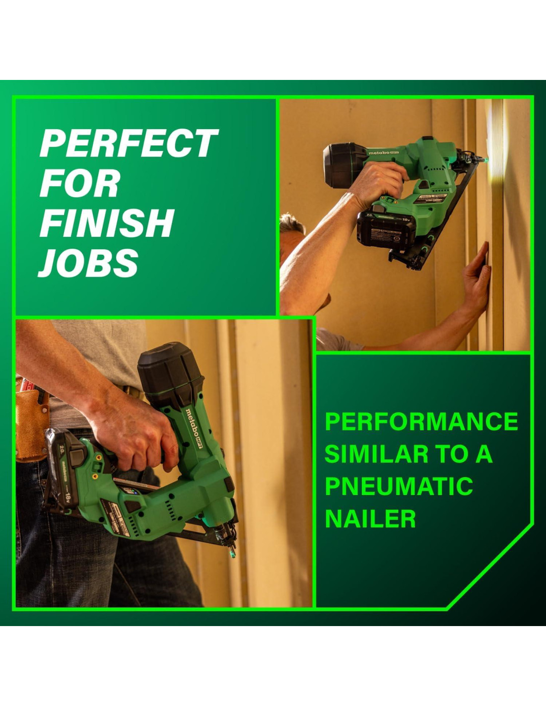 - MARCA PREFERIDA POR PROFESIONALES DE CLAVADORAS DURANTE 11 AÑOS CONSECUTIVOS: Esta clavadora de acabado viene con la garantía de por vida del cuerpo de la herramienta Metabo HPT. Elija nuestras herramientas eléctricas de ingeniería japonesa duraderas para llevar a cabo su trabajo de grado profesional, obtenga más en la tienda Metabo HPT.