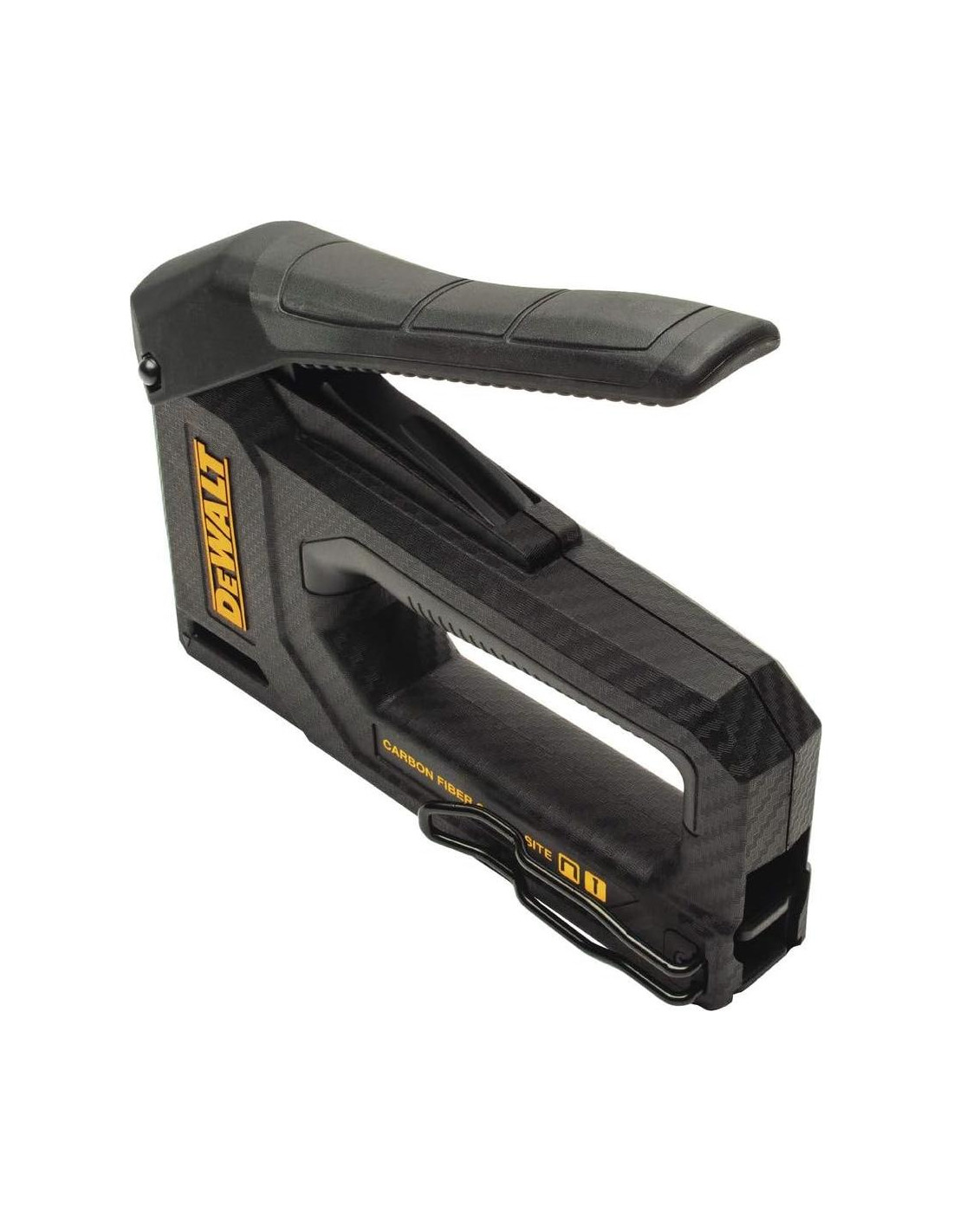 La Grapadora de Compuesto de Fibra de Carbono DEWALT presenta una carcasa de compuesto de fibra de carbono que pesa un 50 por ciento menos y reduce la fatiga muscular en un 25 por ciento. El diseño de carga rápida y fácil con botón y un indicador de bajo suministro de sujetadores aseguran que el suministro sea ideal para trabajos repetitivos, como aislamiento y techado o base de alfombra. Un gancho de cinturón reversible proporciona acceso para diestros o zurdos.