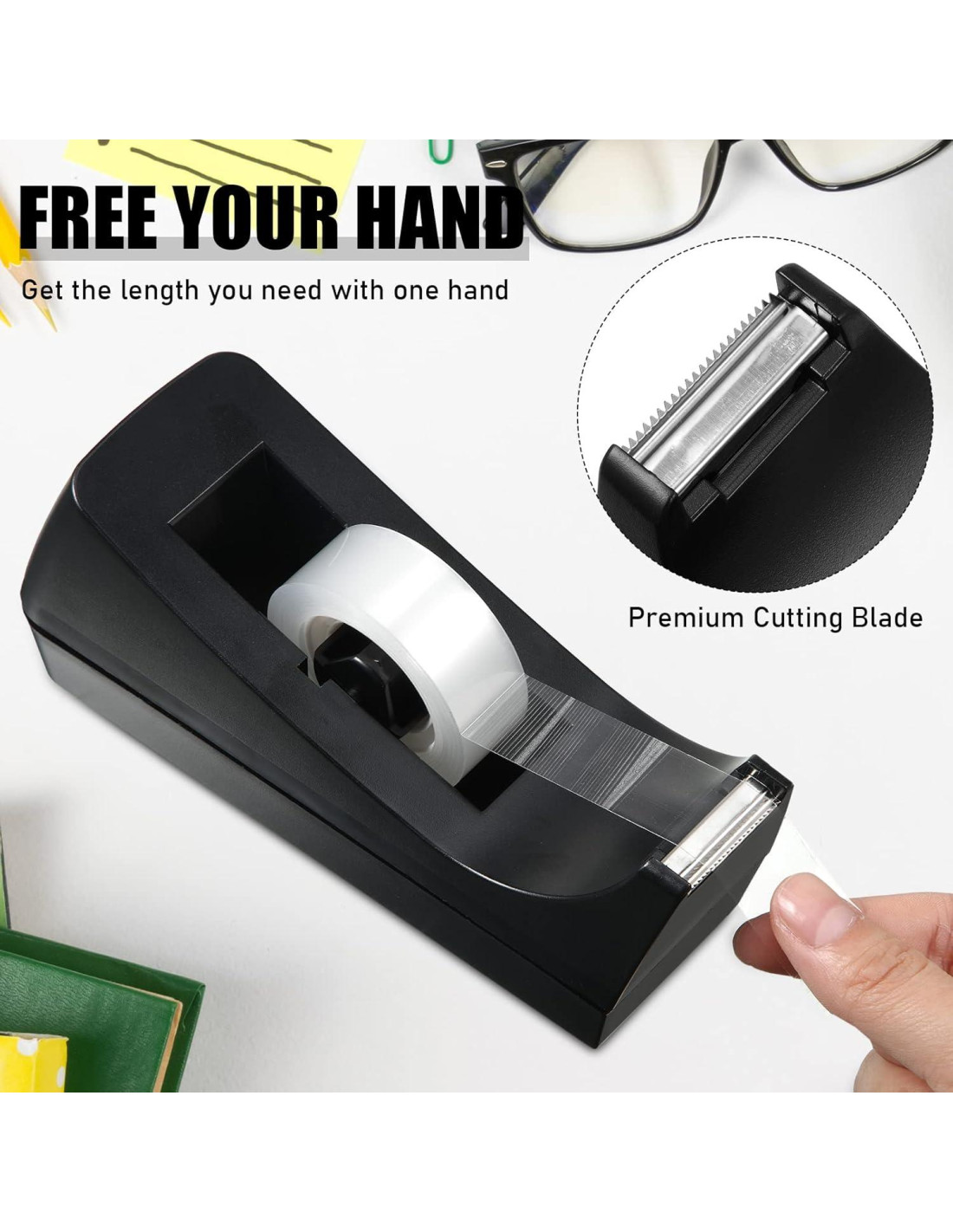 - Diseño Conveniente: diseñado con goma en la parte inferior, la base de este dispensador de cinta de escritorio es antideslizante, lo que permite que se mantenga en su lugar durante su uso, y también se puede usar con una mano, brindándote una buena experiencia de uso
