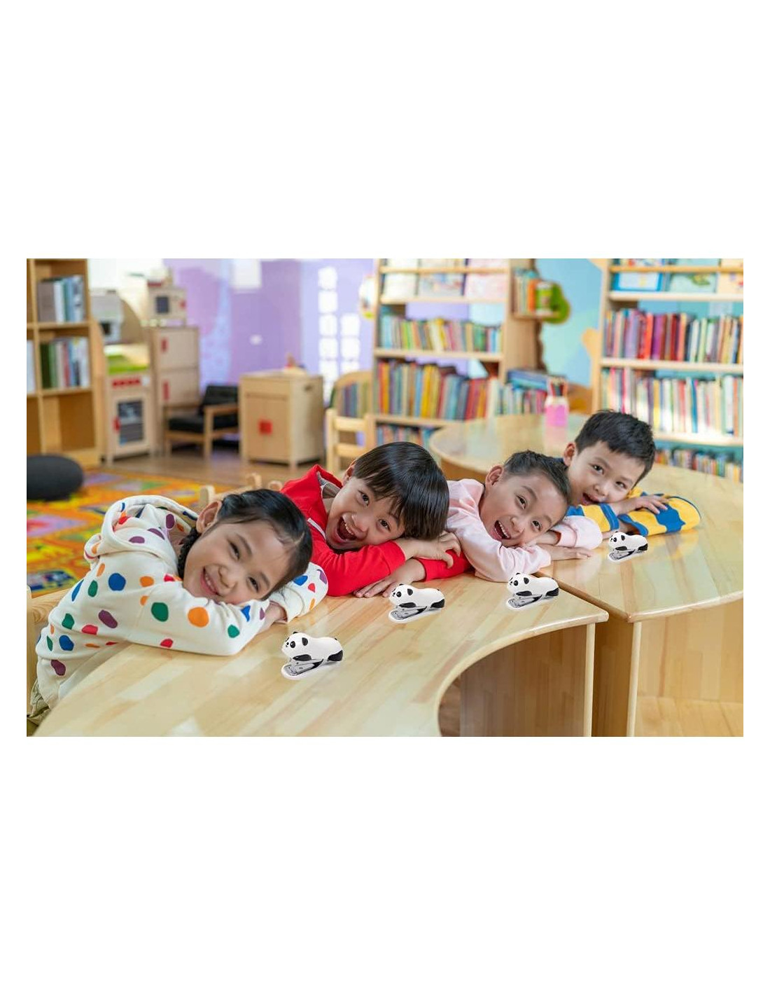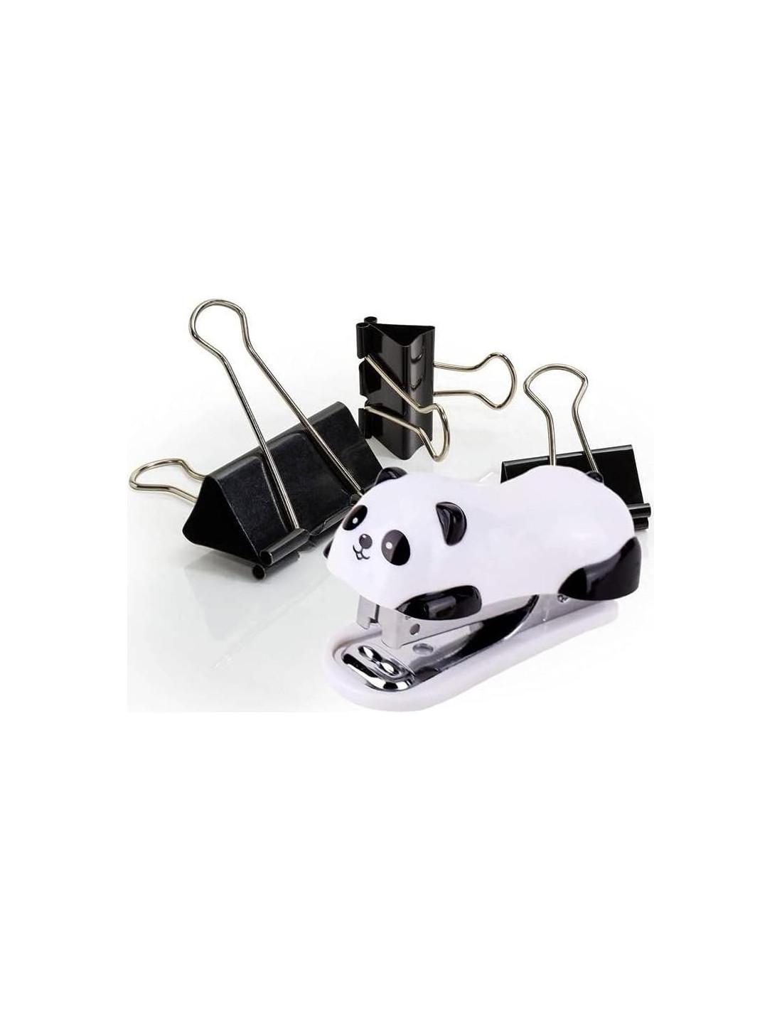 Tamaño Súper Mini: 6CM*2.5CM*4CM (2.36pulgadas*1pulgada*1.57pulgadas). Paquete: 1*grapadora panda +1* grapas No.10 1000pcs. y un removedor de grapas incorporado.