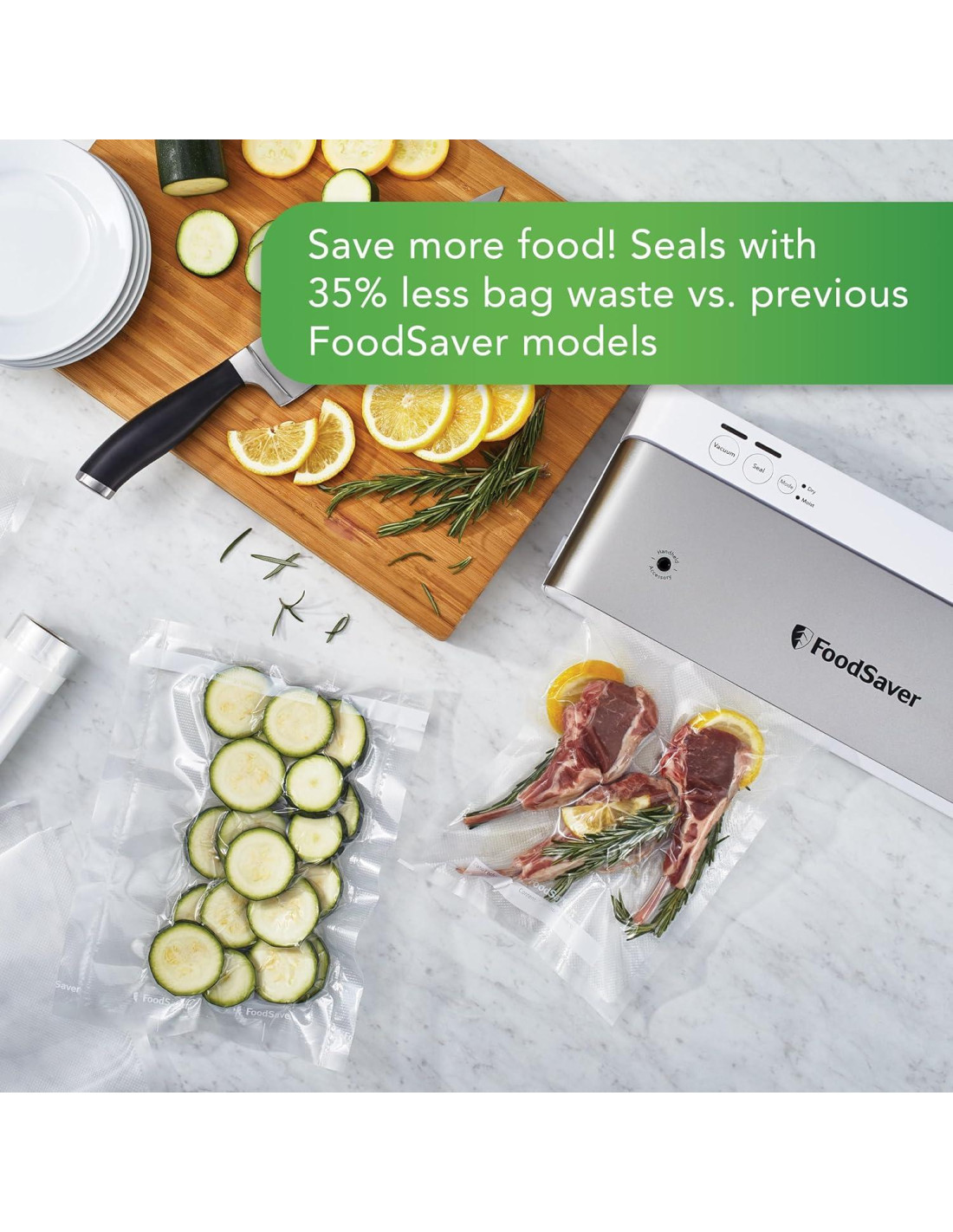 La Máquina de Sellado al Vacío Compacta FoodSaver es un elemento esencial de cocina que ahorra espacio, diseñado para mantener tus alimentos frescos hasta 5 veces más tiempo en comparación con los métodos de almacenamiento ordinarios. Este dispositivo elegante, que se almacena verticalmente, ayuda a prevenir quemaduras por congelación, reduce el desperdicio de bolsas en un 35% en comparación con modelos anteriores, y tiene configuraciones personalizadas para alimentos secos y húmedos. Como un bono adicional, incluye bolsas y rollos FoodSaver para que comiences, funciona con todos los demás accesorios FoodSaver, y se puede emparejar con un Sellador de Mano (se vende por separado) para artículos de refrigerador y despensa.