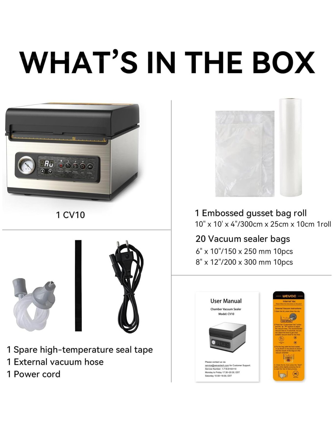 - CAPAZ DE VACÍO EXTERNO/SUCCIÓN - se puede usar con rollos de bolsas de vacío con relieve para almacenar alimentos de tamaño largo. Cualquier longitud de bolsas con relieve de ancho dentro de 10" (25,4 cm), como rollos de 6"x50' (15,24 cm x 15,24 m) y 8"x50' (20,32 cm x 15,24 m) y bolsas con fuelle con relieve son aplicables.