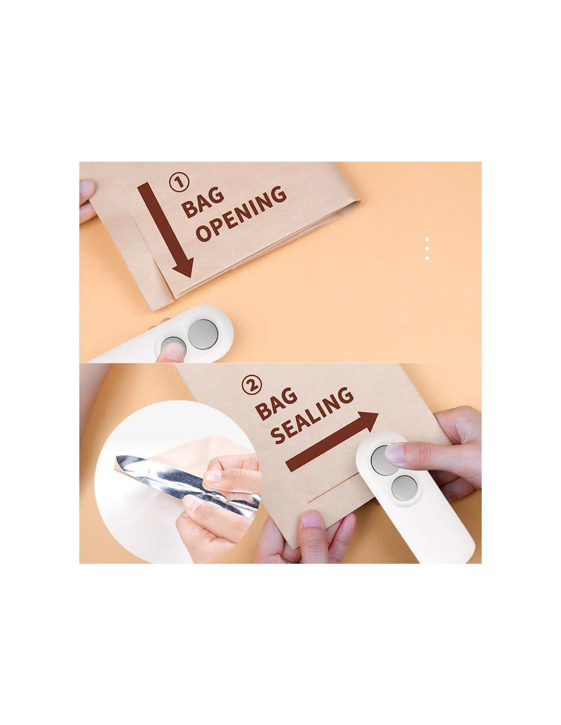 - [SOLDADOR Y CORTADOR 2 EN 1] Este mini Sello de Bolsas tiene dos herramientas útiles que actúan como soldador y cortador. Puedes usarlo para cortar bolsas de snacks u otras bolsas y luego sellarlas nuevamente usando el sellador de bolsas. La herramienta de sellado de bolsas 2 en 1 hace la vida más fácil. Este mini sello de bolsas es un buen gadget para sellar bolsas.