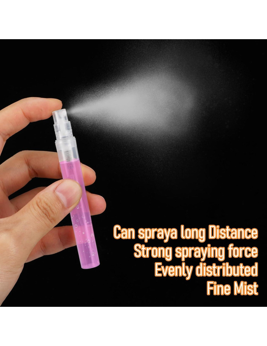 - [Uso Amplio] Las botellas de spray de perfume compactas y transparentes son portátiles, especialmente adecuadas para empaquetar líquidos en viajes para perfume, tónico de maquillaje, brumas faciales y corporales, sprays de limpieza. Las mini botellas de perfume son ligeras y portátiles para llevar al gimnasio, en una cita o para viajar en tu paquete o bolsillo. Las pequeñas botellas de spray de bruma fina de plástico se utilizan ampliamente en belleza, cuidado del cabello, limpieza del hogar, riego de plantas, entrenamiento de mascotas, perfumes, aceite esencial. Los decantes para perfumes son adecuados para usar en tus viajes, viajes de negocios, gimnasio y más.