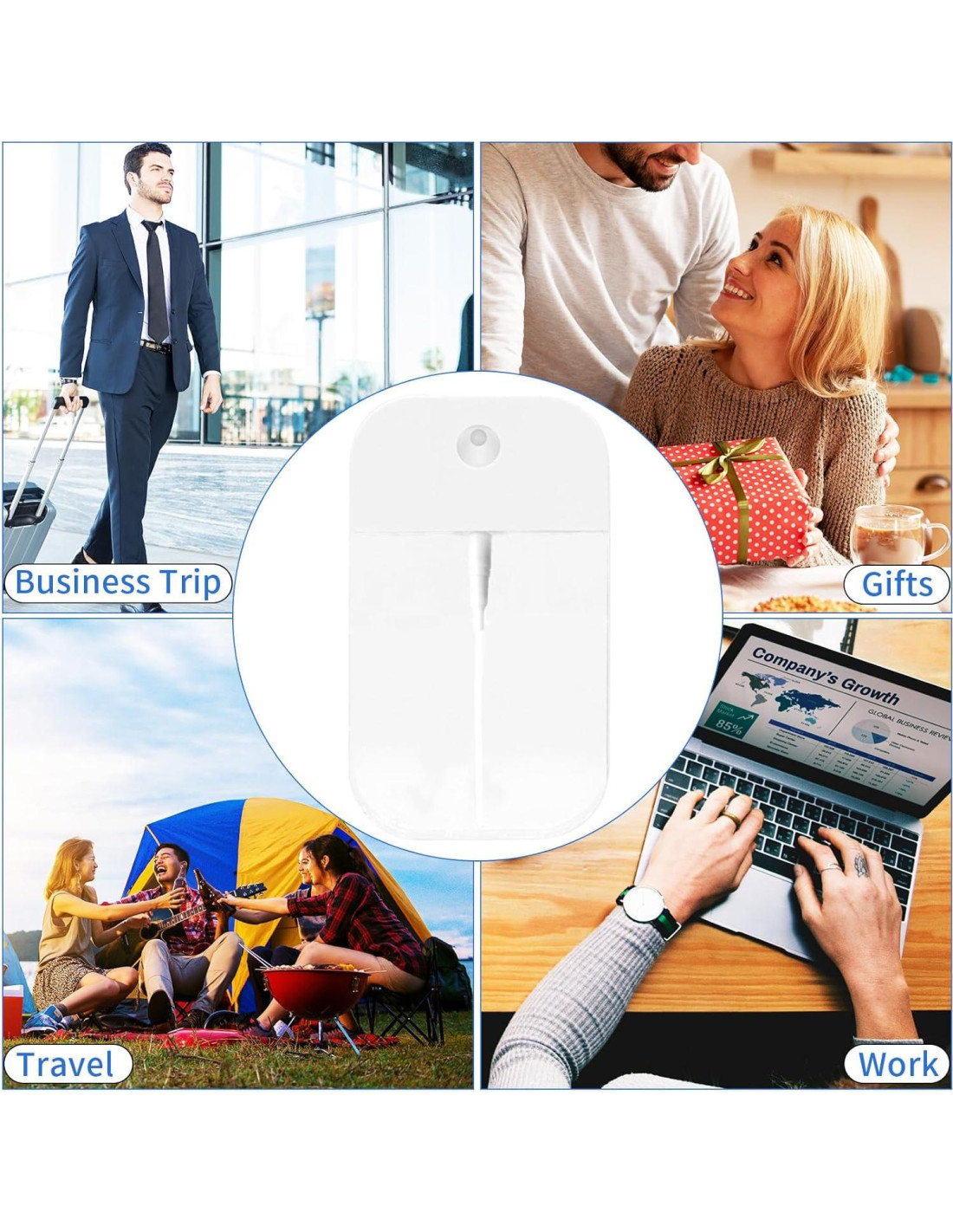 - Ahorro de Espacio: En comparación con las botellas grandes tradicionales, esta botella de spray de desinfectante de manos presenta un diseño estético y compacto, ahorrando una cantidad significativa de espacio y manteniendo tu kit ordenado y organizado.
