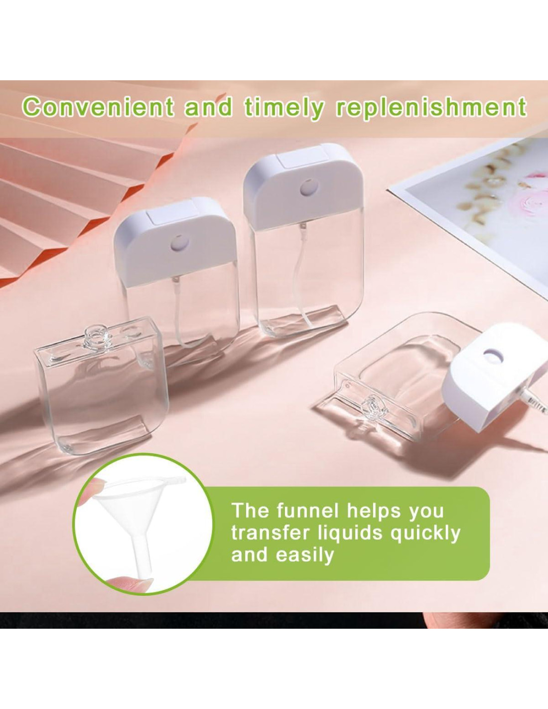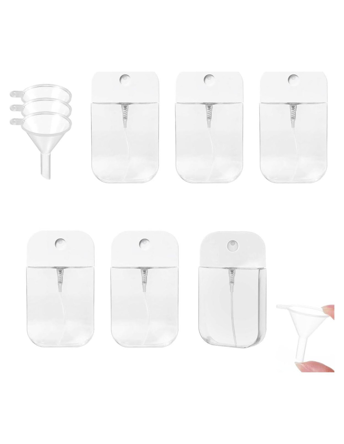 - [RECIBIRÁS] El paquete incluye un total de 6 botellas de spray transparentes de 50ml y 3 embudos, que pueden dispensar fácilmente una variedad de líquidos, incluyendo perfume, desinfectante, tónico, etc., despídete de la molestia de las botellas grandes, fácil de llevar.