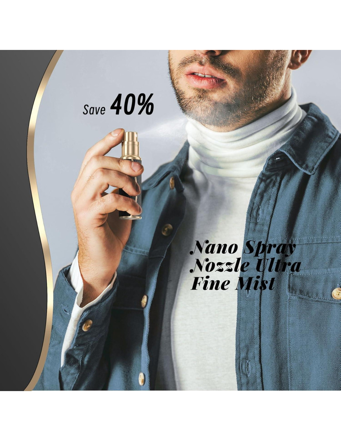 - [Boquilla de Spray Nano para Neblina Ultra Fina] Con una boquilla de spray nano de vanguardia, el atomizador de perfume de viaje entrega una neblina ultra-fina, asegurando una cobertura uniforme y eficiente. Esto no solo mejora la experiencia del usuario, sino que también ahorra en el uso de perfume.