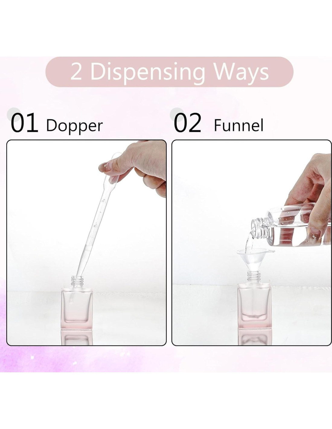 - Incluye: 3 pcs 10ml botellas de spray de perfume de vidrio en degradado rosa+amarillo+azul con tapas doradas, 1 embudo, 1 gotero.