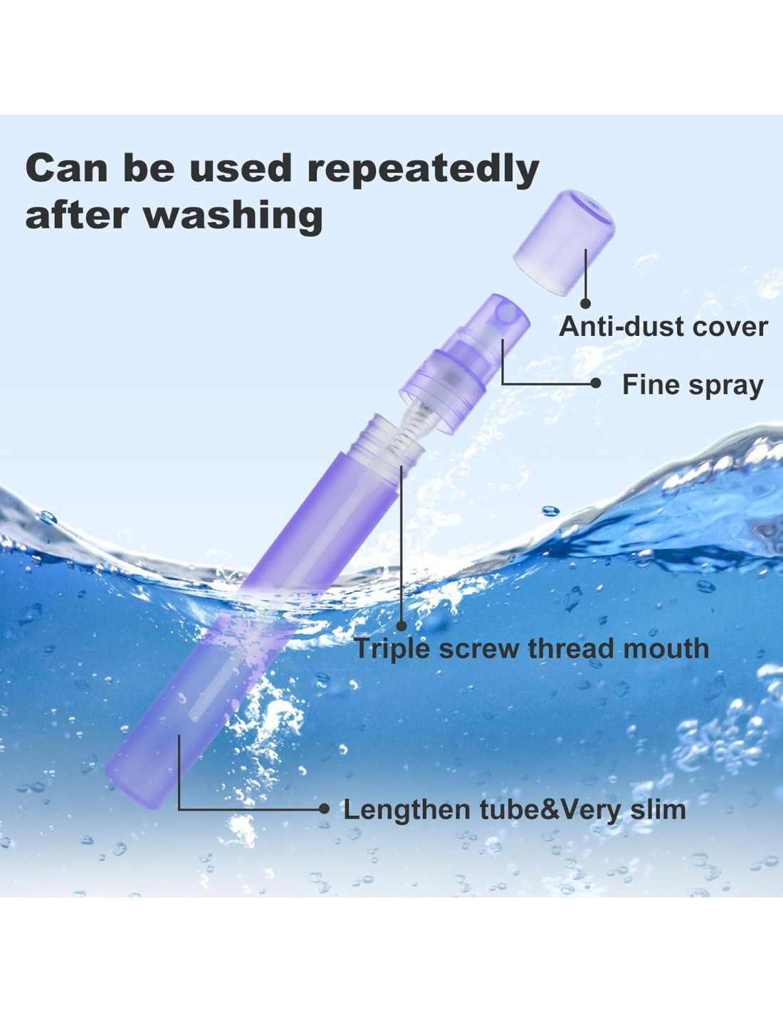 - Botella de Spray Estilo Pluma de 10ml: Nuestro conjunto de 6 mini botellas de atomizador recargables de 10ml/0.34oz es perfecto para llenar con perfumes solubles en agua, lociones, fragancias, brumas faciales y más. La botella estilo pluma con un rociador de neblina fina asegura una distribución uniforme, y el diseño transparente permite un fácil monitoreo de los niveles de perfume.