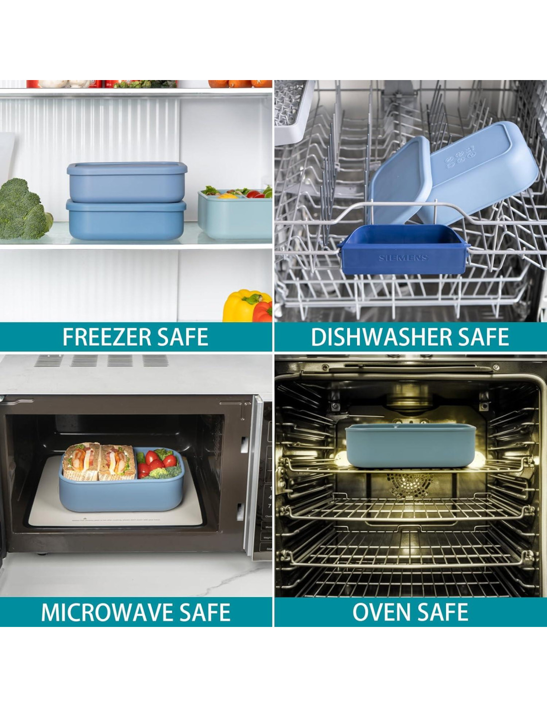 - [APTA PARA LAVAVAJILLAS, CONGELADOR, MICROONDAS Y HORNO] Ya sea que estés preparando comidas para la semana, guardando sobras o calentando el almuerzo en la oficina, esta caja de almuerzo de silicona está lista para todo. Es segura para el congelador, microondas, lavavajillas y horno (hasta 428F (220C)), así que puedes cocinar, almacenar, recalentar y limpiar: todo en un solo recipiente. Fácil de usar, fácil de limpiar y lista para la vida diaria.