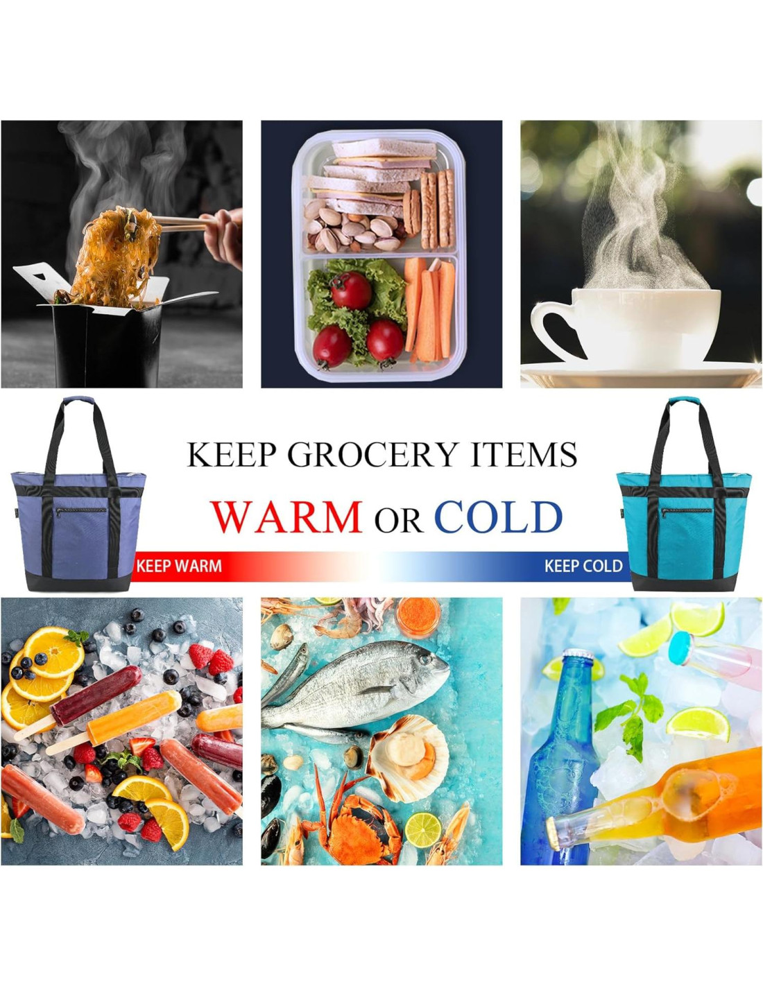 - Manteniendo la Comida Caliente y Fría: Nuestras grandes bolsas térmicas aisladas constan de 4 capas, tela Oxford, película de aluminio, espuma EPE, forro de PEVA apto para alimentos. Nuestra bolsa fría suave tiene un material grueso y resistente que mantendrá tus artículos fríos y congelados frescos y tus suministros calientes a temperatura durante aproximadamente 8 horas o más. (1) Mantiene el Hielo Congelado por Horas: las bolsas frías han sido probadas para mantener el hielo congelado durante 8 horas o más cuando están cerradas con cremallera. (2) La Comida Caliente Permanece Caliente: La bolsa térmica de 4 capas mantiene tu comida caliente mientras conduces por la ciudad.