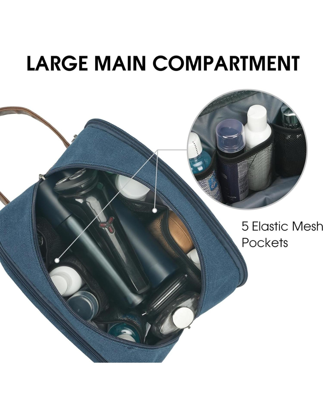 - Fácil de Llevar - Fabricada con lona duradera y detalles de cuero PU, esta bolsa de aseo combina resistencia robusta. El tejido resistente al agua ayuda a proteger tus esenciales, mientras que el asa de cuero facilita llevarla o colgarla en movimiento.