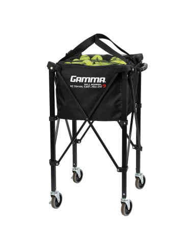 El carro de viaje EZ Pro 250 es el máximo en carros de enseñanza profesionales portátiles diseñados para el profesional de enseñanza o entrenador que viaja de un sitio a otro. La bolsa de gran capacidad para 250 pelotas, de alta resistencia, está asegurada a las esquinas del marco con broches de metal y se levanta fácilmente para el transporte. El carro cuenta con ruedas de 4 pulgadas de alta resistencia con bandas que no marcan, que se pliegan en segundos, una conveniente asa de correa para tirar del carro y una funda de transporte. teléfono: 800 333 0337 correo electrónico: [email protected] sitio web: www.gammasports.com