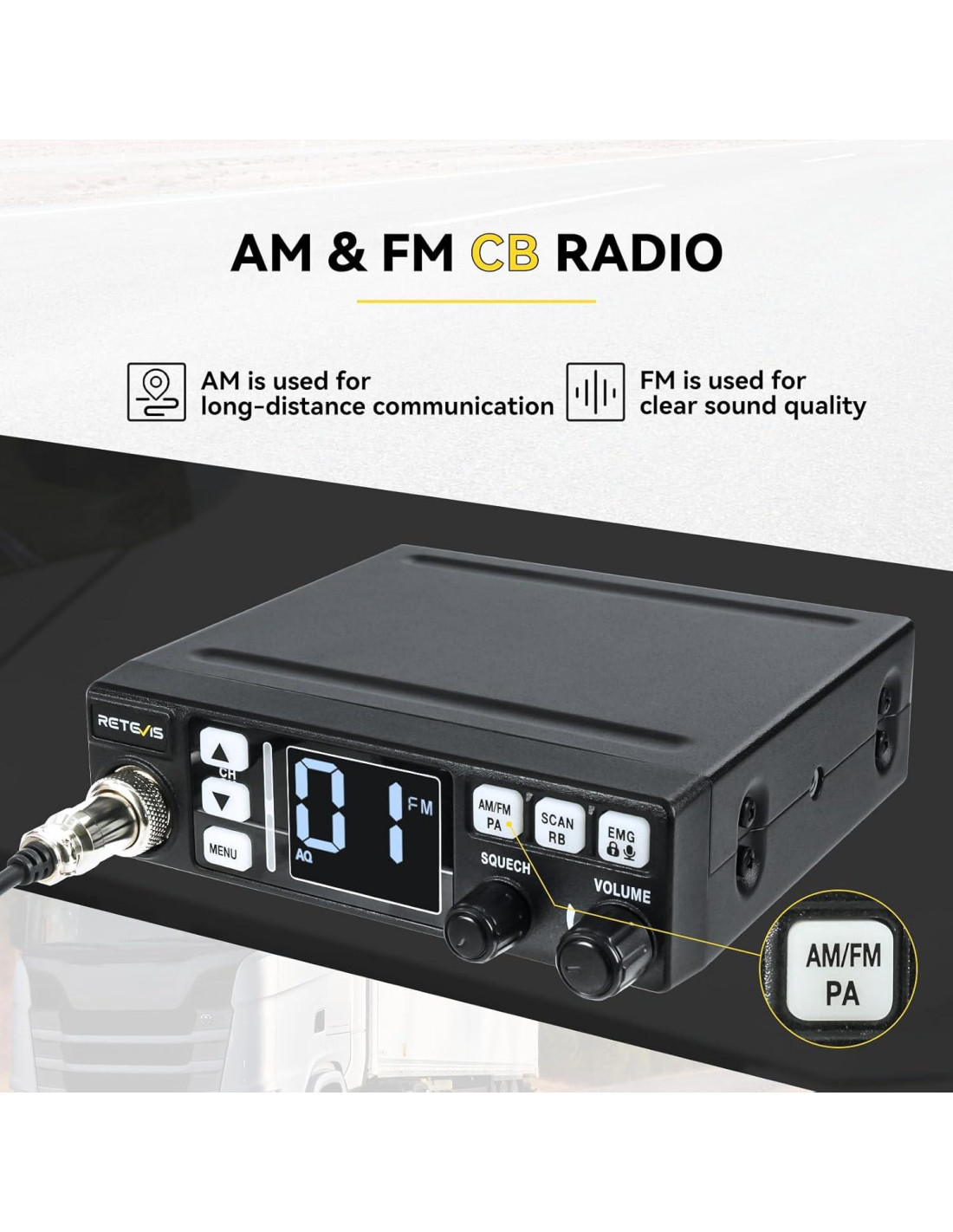- Operaciones flexibles: la estación base de radio CB soporta modos AM y FM; AM le ayuda a hablar con camioneros lejanos; FM le permite comunicarse claramente; satisfaciendo sus diversos requisitos de uso
