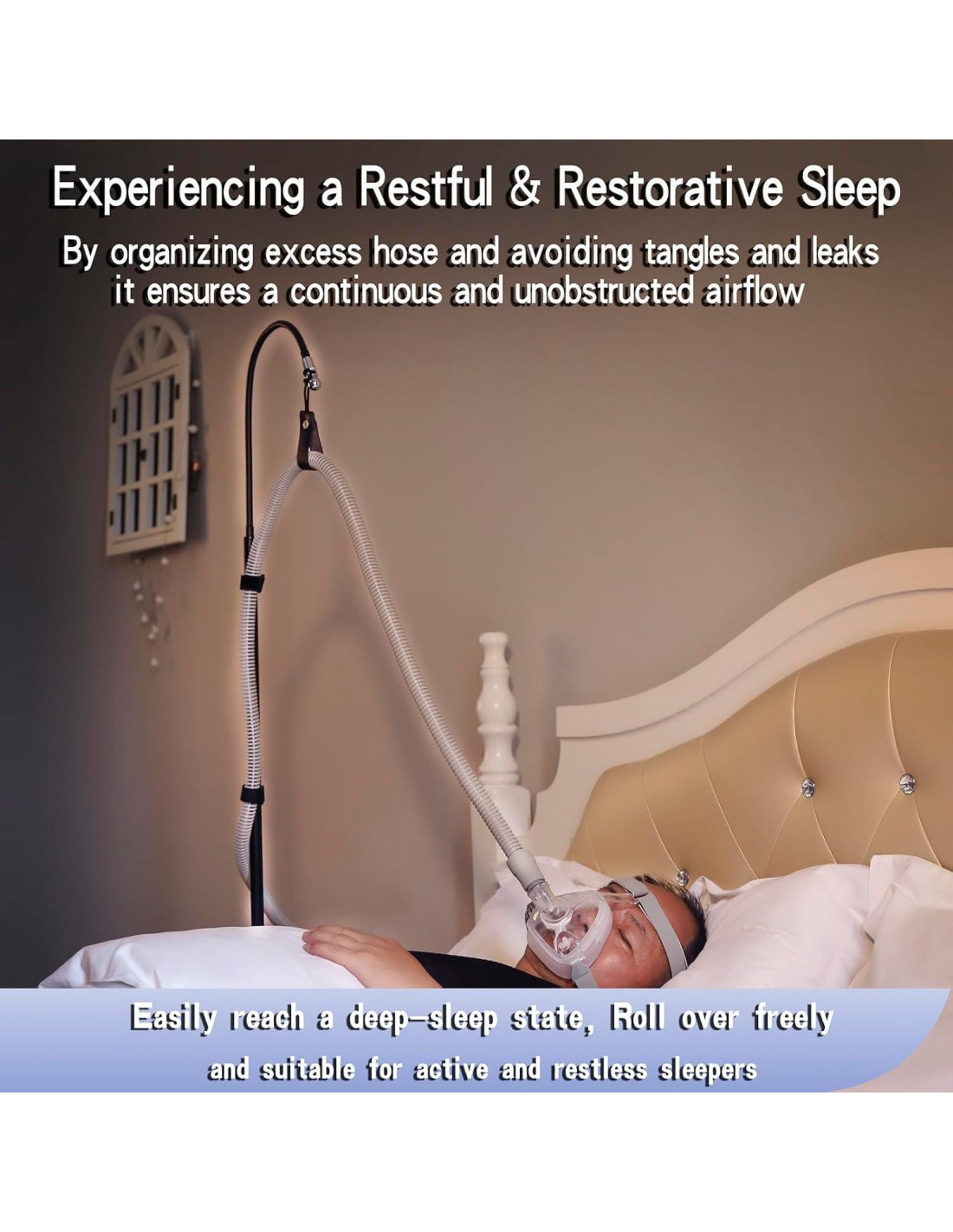 - [Flexible y Seguro] Las mangueras CPAP no limitan tu posición de sueño, ya que nuestros soportes de manguera CPAP tienen alturas y ángulos ajustables, incluyendo una altura máxima de 170 cm, y brazos oscilantes flexibles con resorte que pueden doblarse 360 grados, por lo que no tienes que preocuparte por los riesgos de que las máscaras de oxígeno se caigan o de que la manguera se enrede. Esto te permite volver más a la vida que estar abrumado por problemas de seguridad.