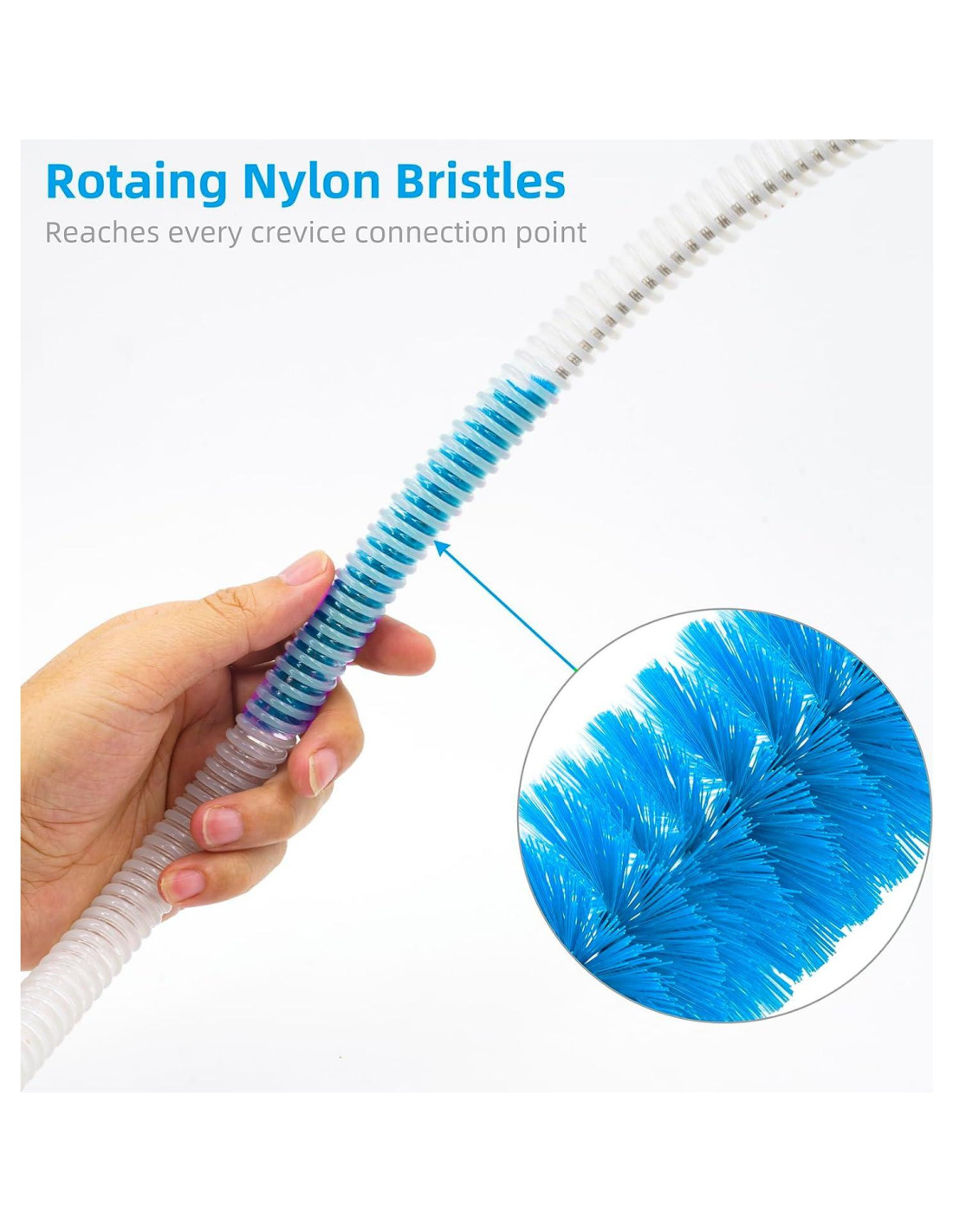 - Cepillo de tubo de 7 pies (2.13 metros) fuerte y flexible, alcanza y limpia sin esfuerzo toda la longitud de la manguera CPAP