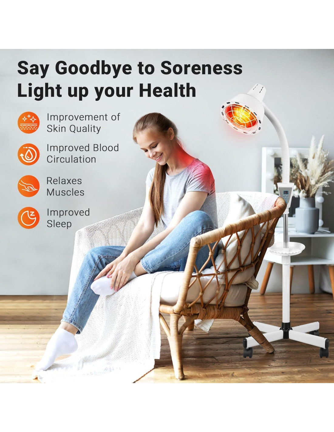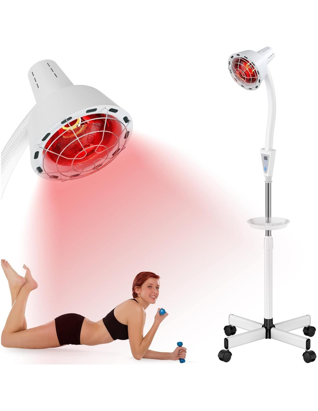 - Lámpara de Calentamiento Infrarrojo con Soporte: la temperatura de la lámpara de tratamiento infrarrojo se puede ajustar libremente. La lámpara de terapia infrarroja tiene una función de ajuste de tiempo de 5-60 minutos, y hay diez niveles de ajuste de temperatura del 1 al 10, lo que te permite experimentar el tratamiento a diferentes temperaturas. Esta luz infrarroja cercana con temporizador puede ayudar a aliviar el dolor. Durante el tratamiento, es necesario mantener una distancia de al menos 18 inches (45,72 cm) de la lámpara de calefacción.