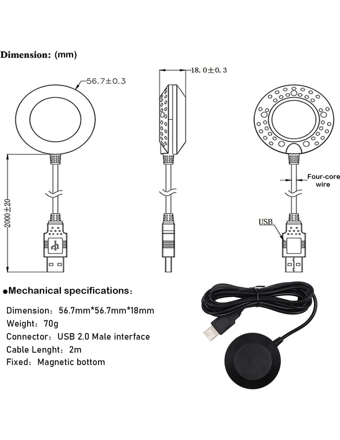 - Este receptor GPS USB tiene una longitud de cable de 2 metros, fondo con adsorción magnética, el Módulo GPS BN-808 USB tiene 4M de flash para guardar la configuración. Así que no necesitas restablecer los datos cuando lo uses la próxima vez