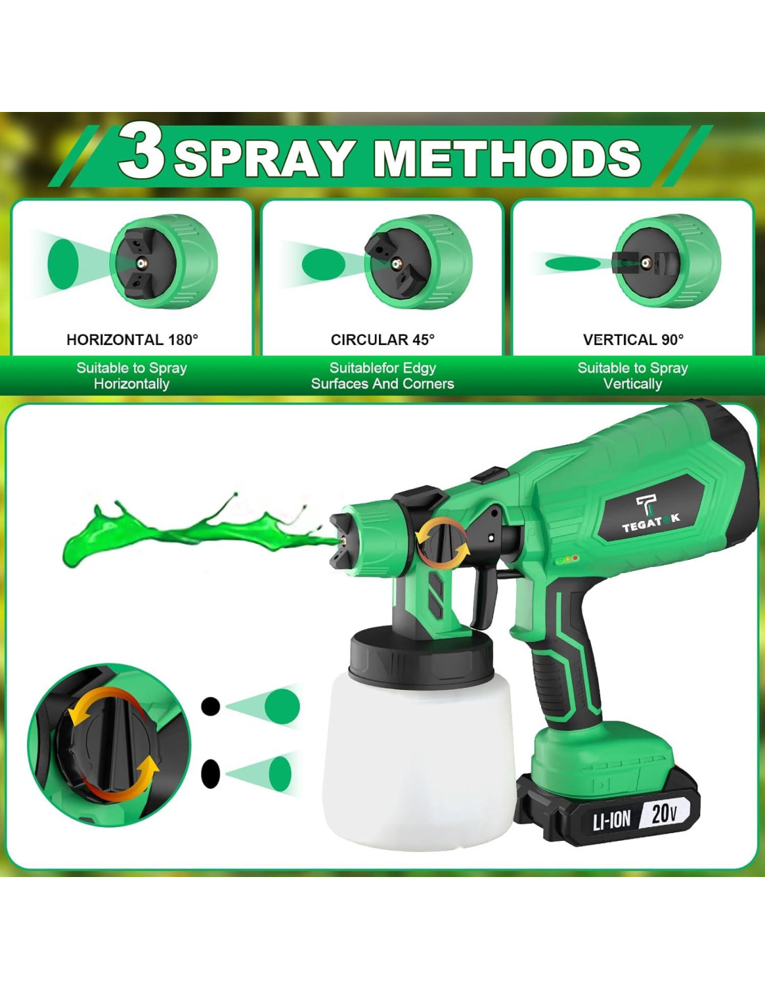 - [Funciones únicas de soplado y limpieza] Este pulverizador de pintura inalámbrico es perfecto para limpiar el polvo antes de pulverizar o limpiar después de pintar. Úsalo como una pistola de agua eléctrica o pulverizador de jardín para preparar cualquier superficie. Un imprescindible pulverizador de pintura tanto para principiantes como para profesionales.