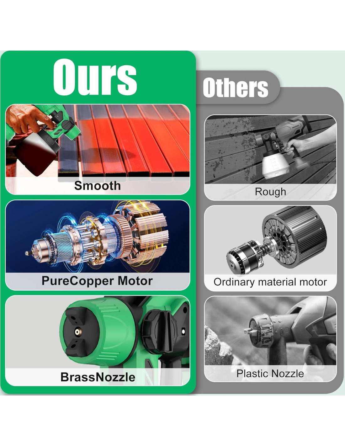 - [Fácil de usar y limpiar] A diferencia de los sistemas tradicionales de rodillos de pintura, esta pistola de pintura pulverizadora es ligera, inalámbrica y fácil de desensamblar para una limpieza rápida. Los componentes desmontables la convierten en una gran máquina de bronceado en spray y pulverizador de pintura eléctrica para cambios rápidos entre colores y tareas.