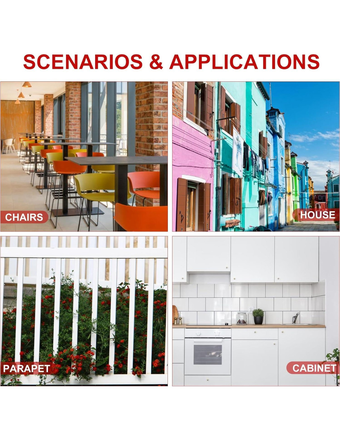- Amplia aplicabilidad: con una viscosidad máxima de hasta 80-DINs, el pulverizador de pintura eléctrico puede manejar una amplia gama de tipos de pintura, como pintura de látex, barnices, manchas, selladores y pintura tipo tiza. Esta pistola de pintura es más eficiente con un gran contenedor de 800ml, adecuada para interiores y exteriores del hogar, pintura de casas, paredes, cercas, madera, muebles, gabinetes, terrazas, trabajos de bricolaje, etc.