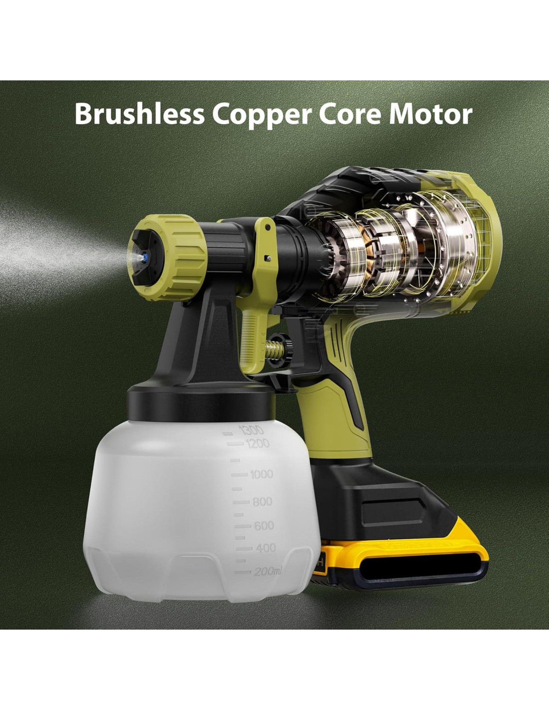 - [Pulverización eficiente para cobertura suave] Alimentado por un motor sin escobillas, este pulverizador de pintura eléctrico ofrece un flujo constante de 1000ml por minuto para una cobertura uniforme y eficiente. Ya sea que lo uses como pulverizador de pintura para pintar casas, restaurar muebles o abordar proyectos de bricolaje, garantiza un acabado suave y profesional.