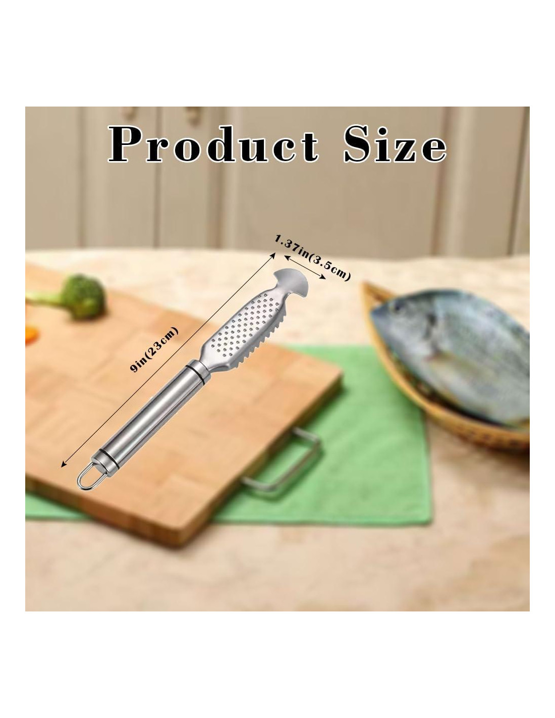 - Diseño eficiente: Fina doble fila de dientes que asegura un raspado eficiente, eliminando efectivamente las escamas de pescado, sin dañar la delicada carne de pescado debajo