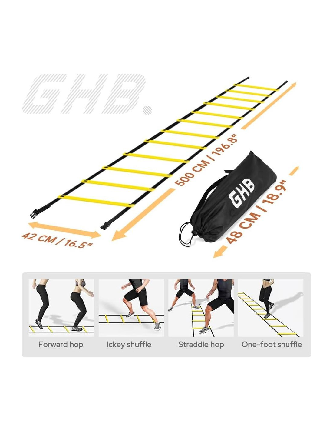 - 12 Peldaños y 6.1 Metros: La escalera de agilidad viene con 12 peldaños de plástico duradero, y la longitud total es de 6.1 metros.