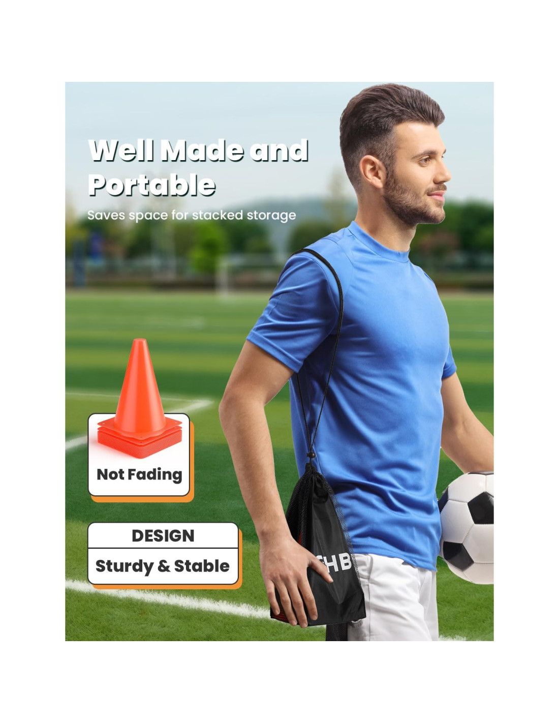 - Estables y Cómodos al Tacto: El diseño cuadrado de la base asegura que los conos de entrenamiento se mantengan firmemente y para un mejor equilibrio. Además, cuatro agujeros en la base se pueden usar para fijar, estabilizando los conos deportivos incluso en clima ventoso. Borde suave y redondeado, suave y cómodo al tacto.
