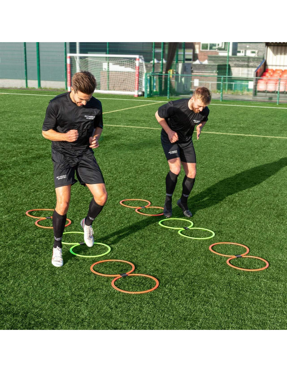 - DISEÑO PARA TODAS LAS CLIMAS PARA USO TODO EL AÑO - Estos anillos de agilidad a prueba de clima están diseñados para uso durante todo el año, manteniendo su calidad en todas las condiciones. Entrena bajo la lluvia o el sol y mejora tu rendimiento atlético con este conjunto versátil y de alta calidad.